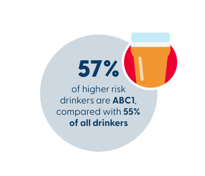 Higher risk drinkers are more likely to be male, from ABC1 social groups and aged 45-54 than other drinkers.