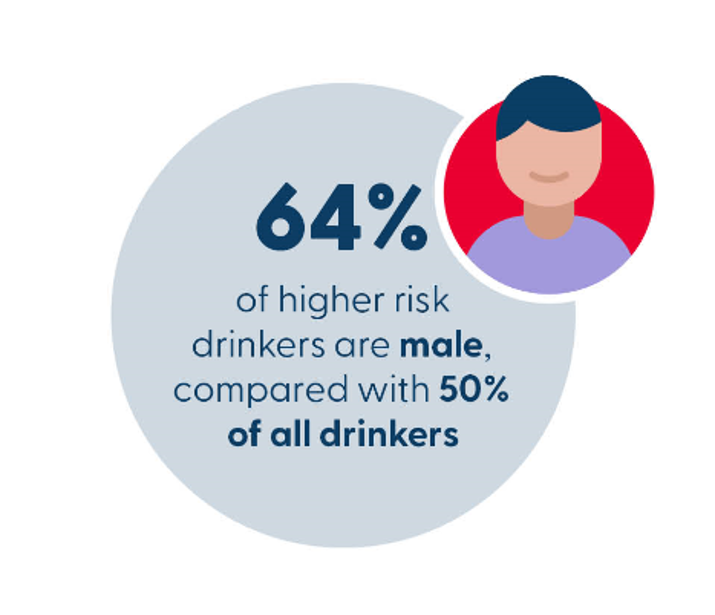 Higher risk drinkers are more likely to be male, from ABC1 social groups and aged 45-54 than other drinkers.